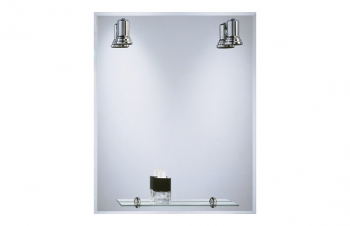 Espejo luminoso con estante y dos focos.