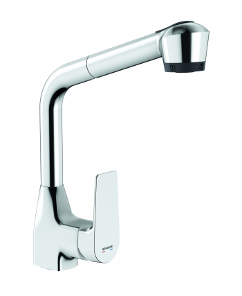 Monomando de fregadera con ducha extraíble acabado cromado de alta calidad.