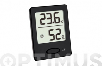 Termómetro higrómetro digital con visualización de la temperatura y humedad interior.