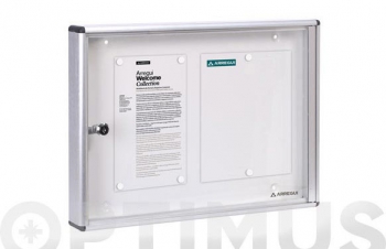 Panel para anuncios con el cuerpo de aluminio natural y puerta de metacrilato, capacidad 2 hojas din a", medidas: alto 350 mm, ancho 480 mm,fondo 50 mm, incluye imanes de sujección