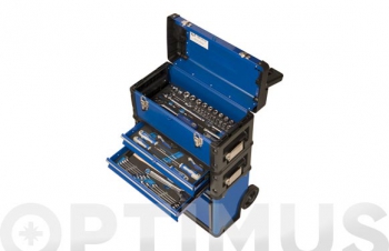 Carro con cajas apilables sobre ruedas con 96 piezas.