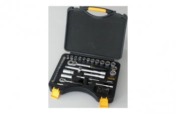 3-4-5-6-7-8, ), piezas de ½": 13 llaves super lock de 8 a 27 mm, 2 barras de extensión 125 + 250 mm, 2llaves de bujías 16 - 21 mm, soporte de ¼" para puntas, adaptador de3 vías 3 / 8 y ½", adaptador magnético de ¼" x 60 mm, soporte de puntas de ¼" x 25 mm,