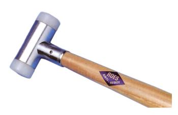 Mazas de material férrico, con mango de madera reforzado y tratado con un sistema de absorción de vibraciones y antirretroceso llamado antirebote.
