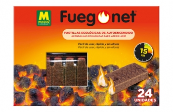 Las pastillas de autoencendido ecológicas fuegonet están compuestas de madera vegetal y aceites vegetales.