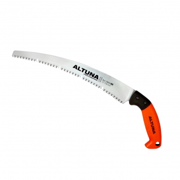 Modelo curvo dentado japones con mango de aluminio engomado y funda.