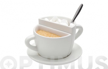 Azucarero doble cerámica, con dos compartimentos para colocar diferentes tipos de azúcar.