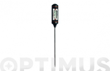 5989, con sonda de acero inox de 12cm, rango de -50ºc+150ºc, confundade protección, funciona con pila g13 de botón