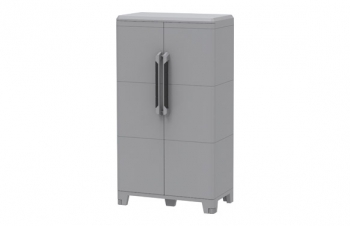 Con 6 pies, los dos delanteros regulables en altura, bisagras metálica, baldas modulables, capacidad de carga de las baldas 40 kg (25+15), capacidad de carga de la base 80 kg, protección contra los rayos uv, diseño apto para la intemperie con certificado ip43, posibilidad de cierre con candado.
