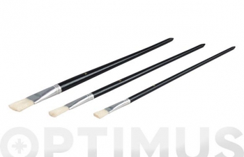 Set de 3 pinceles planos finos especialmente pensados para efectuar pequeños retoques finales a trabajos de pintura.