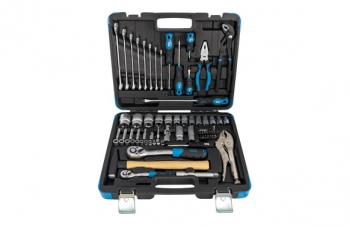 Carraca de ½" 13 vasos métricos de ½",10, 11, 12, 13, 14, 15, 17, 19, 22, 24,27, 30 y 32 mm 1 articulación universal de ½" 1 barra de extensión de 125 mmde ½" 2 vasos de bujía de ½" : 16 y 21 mm 8 llaves combinadas de : 10, 11, 12,13, 14, 15, 17 y 19 mm 1 carraca de ¼" 1 mango destornillador de ¼" 1 barrade extensión de 1/4" de 75mm 14 cabezales : 7 (*) hexagonales, medidas: t10,t15, t20, t25, t27, t30, t40 4 (-) planos, medidas : 3, 4, 5 y 6 mm 3 (+) phillips - estrella, medidas : ph1, ph2, ph3 5 destornilladores : 1 de 8x200 mm (-) 1 de 6x100 mm (-) 1 de 6x40 mm (-) 1 de 6x100 mm (+) 1 de 6x40 mm (+)+) 1alicate mordaza 1 alicate de pinza ajustable 1 alicate de corte 1 pack de llaves allen de 1.