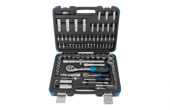 01 carraca universal de 1/2" 04 vasos métricos de 1/2",14, 15, 17 y 19 mm 18vasos métricas de 1/2",10, 11, 12, 13, 14, 15, 16, 17, 18, 19, 20, 21, 22, 23, 24, 27, 30 y 32 mm 02 vasos de bujía de 1/2",16 y 21 mm 02 barras de extensiónde 5" y 10" 01 articulación universal de 1/2" 01 adaptador h 3/8" m 1/2" 17cabezales destornillador de punta : estrella : #1, #2 estrella doble : #1 y #2hexagonales : 3, 4, 5, 6 mm planos : 4, 5.
