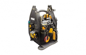 Parte inferior de goma, correa de transporte y asa de plástico, 14 bolsillos exteriores, con correas de nylon, 3 soportes para correas, 8 bolsillos interiores con correas, soporte para cinta métrica, soporte para 3 correas, soporte interno de herramientas extraíble con correas.