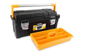 Práctica caja de herramientas de plástico, cómoda y útil para almacenar o transportar herramientas.