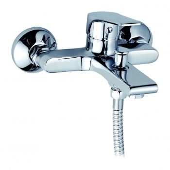Cuerpo de latón, mango de zamak, cartucho ø 35 mm, aireador m24 con mango de ducha antical y soporte articulado, flexo inox extensible 1,75-2,20 cm con doble engatillado.