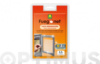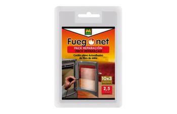 El cordón plano autoadhesivo fuegonet de massó es una cintade fibra de vidrio de 10mm de anchura, 3mm de groso y 2,5m de longitud.