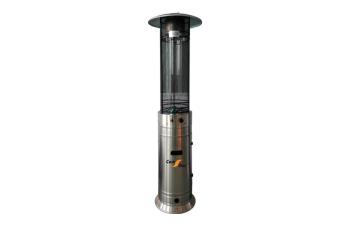Estufa exterior cilindrica de acero inoxidable.